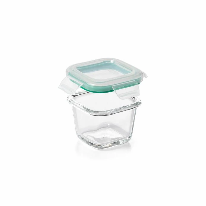 OXO Good Grips Smart Seal Glass Containers offer a safe, easy, attractive solution for fresh food storage. Four locking tabs and a removable silicone gasket form a strong, leakproof seal. The BPA-free borosilicate glass is stain-proof and can withstand extreme temperature changes without cracking. The elegant design looks great in any kitchen or on any dining room table. Smart Seal Containers are dishwasher safe and stack in your fridge or freezer, or nest in your cabinet. Bodies and lids are microwave, freezer and dishwasher safe. This set includes two 4 oz Containers with their leakproof lids, and the small size is great for dips and sauces.