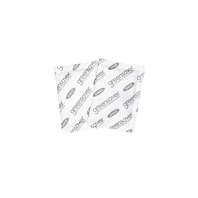 Fruits and vegetables naturally emit ethylene gas, which causes premature spoilage. GreenSaver Crisper Inserts mount with suction cups on crisper walls above produce to absorb ethylene with non-toxic enhanced carbon filters. Filters last 90 days. Pack includes 2 Crisper Inserts and 2 filters.