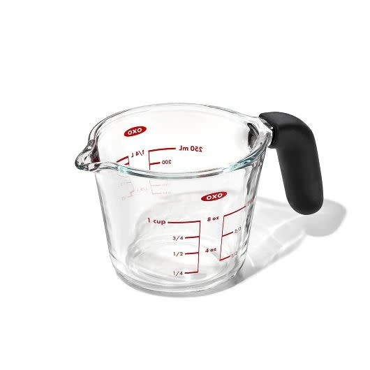 Measuring, pouring, storing, heating and reheating liquids is even easier with the OXO Good Grips 1-Cup Glass Measuring Cup.