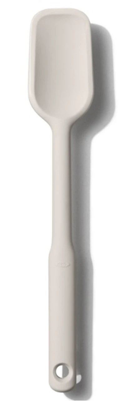 The Oxo Silicone Spoon Spatula is a multi-purpose kitchen tool. You can replace several utensils with it. Grab it when you need to mix, scrape, scoop, or stir. This silicone spoon spatula is heat-resistant and safe to use with non-stick cookware.