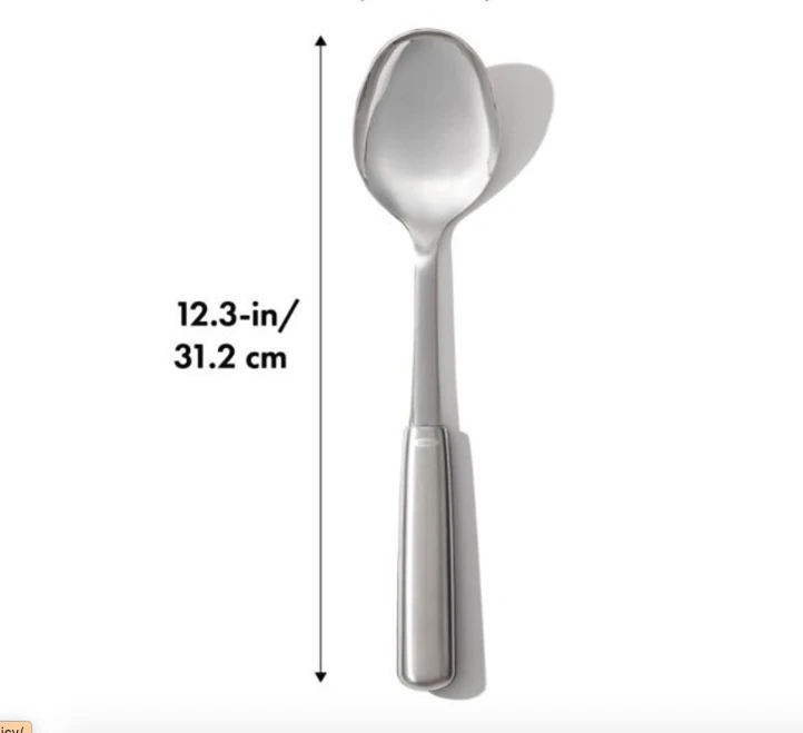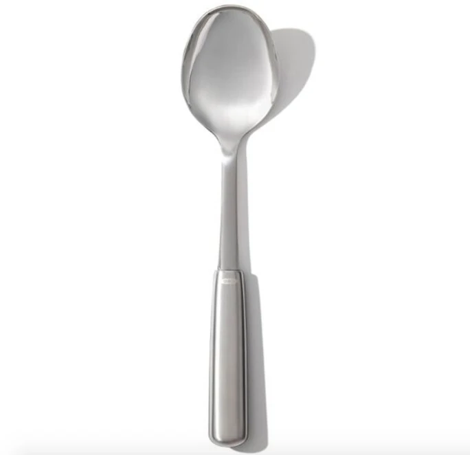Whether you’re stirring a chili, serving up mac and cheese, or portioning out meatballs, the OXO Steel Cooking Spoon can get the job done.
