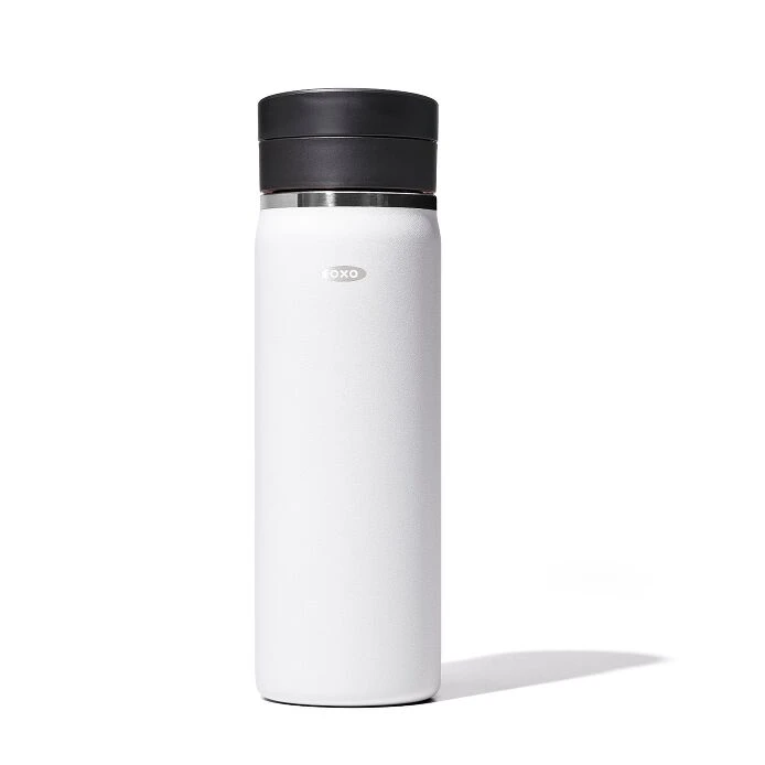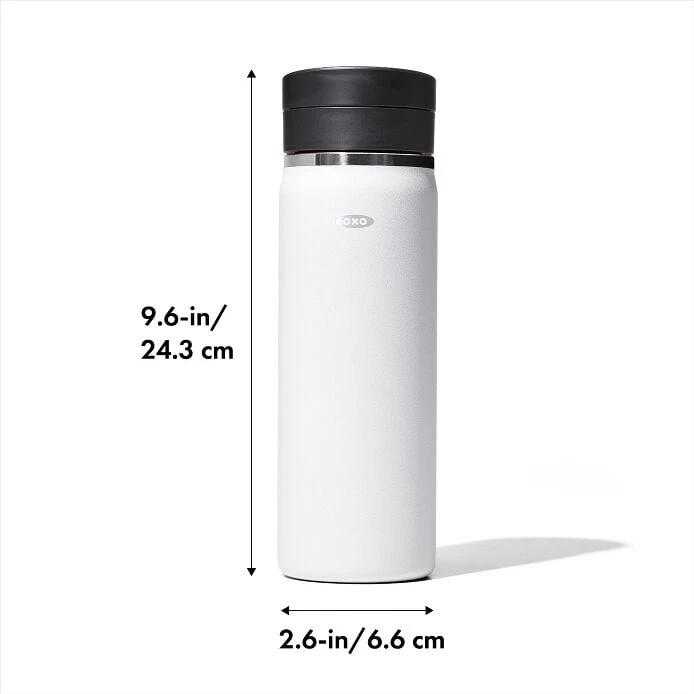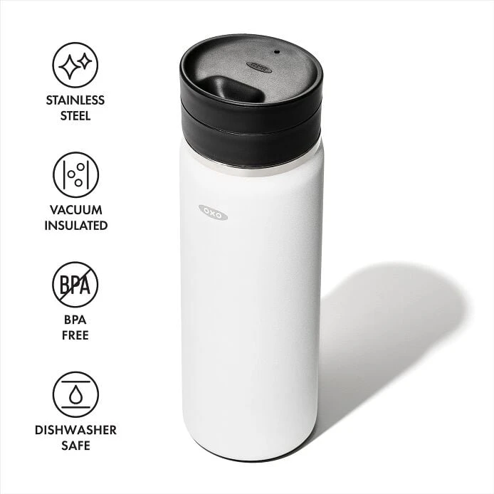 Whether your first sip is at the kitchen counter, in the car or on a walk with the dog, with the OXO Good Grips Thermal Mug with SimplyClean™ Lid, you can enjoy your favorite brew without missing a beat. Professional-grade stainless steel lets the of your drink shine through, while the BetterTemp™ vacuum insulation keeps things hot for 12 hours or cold for 24 hours. The SimplyClean™ lid twists open for sipping and fully disassembles for thorough cleaning. A sweatproof coating provides a secure grip no matter where the day takes you. This travel mug is sized to fit most coffee makers and cup holders for easy brewing and stowing. Dishwasher safe.Features Professional-grade stainless steel construction BetterTemp ™ vacuum insulation keeps drinks hot for 12 hours and cold for 24 Easy twist opening for seamless sipping Sized to fit most cup holders Holds 20 oz/590 mL SimplyClean™lid disassembles for thorough cleaning, dishwasher safe
