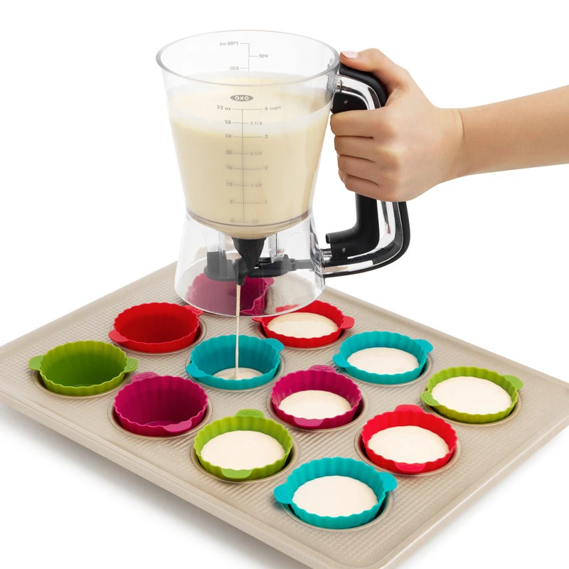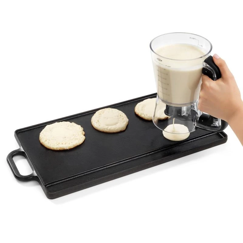 - Easy, one-handed batter dispensing for perfectly uniform pancakes, cupcakes, crepes and more.