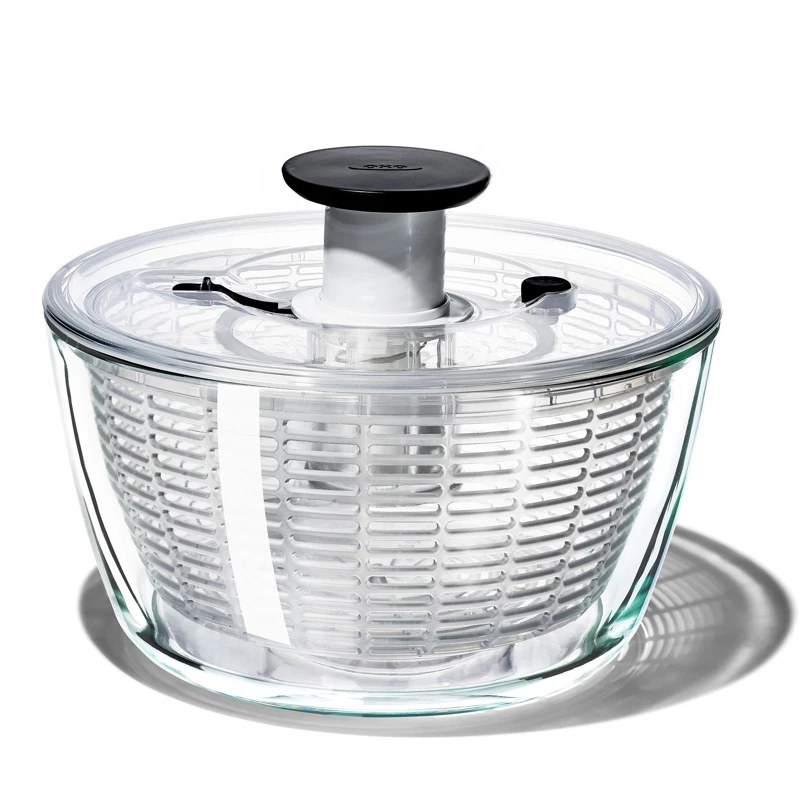 - Clear borosilicate glass bowl, BPA Free plastic spinner basket.