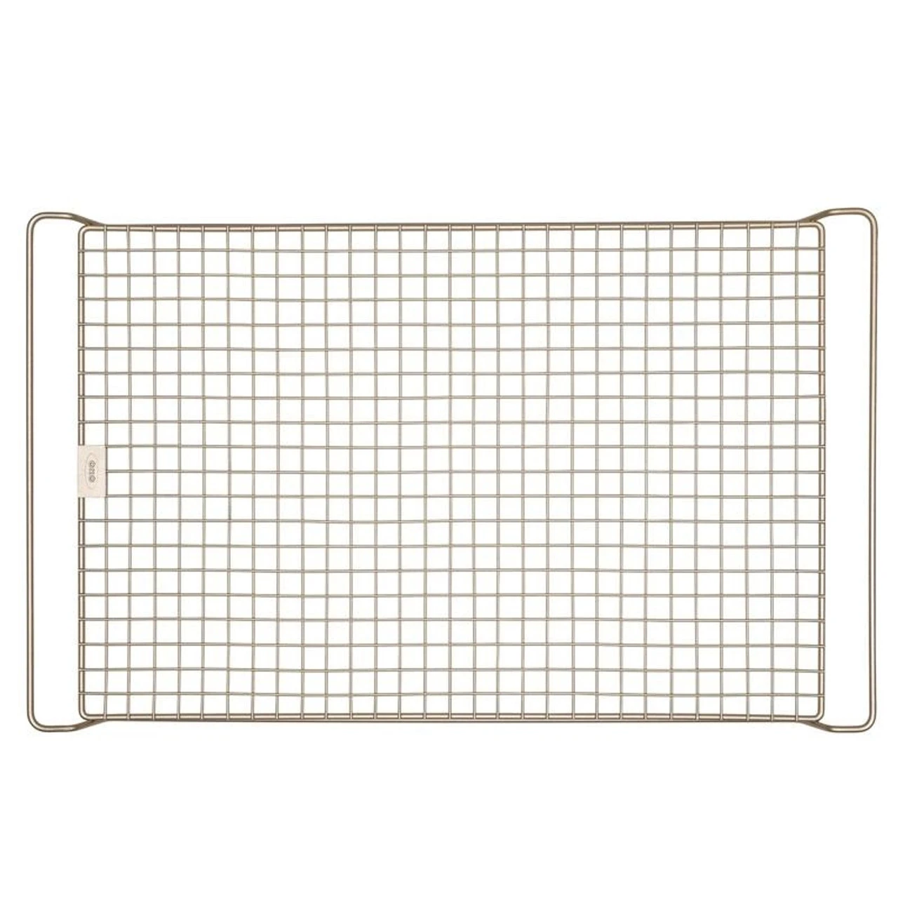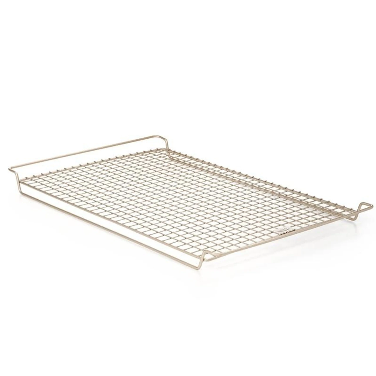 Cooling & Baking Rack, 11.5 x 18.5″ / 29 x 47cm, Quickly cools fresh baked goods, drains fried foods and supports hot pots. Footed design for even cooling, air circulation and to prevent sogginess. Grid pattern provides even support and keeps pieces from falling through. Constructed with ILAG™ technology, a Swiss-engineered, PFOA free, two-layer, commercial-grade coating that provides the ultimate non-stick food release. This feature makes it resistant to scratches, stains, corrosion and abrasions. Oven safe to 232°C / 450°F. Easy release & clean-up. Dishwasher safe.