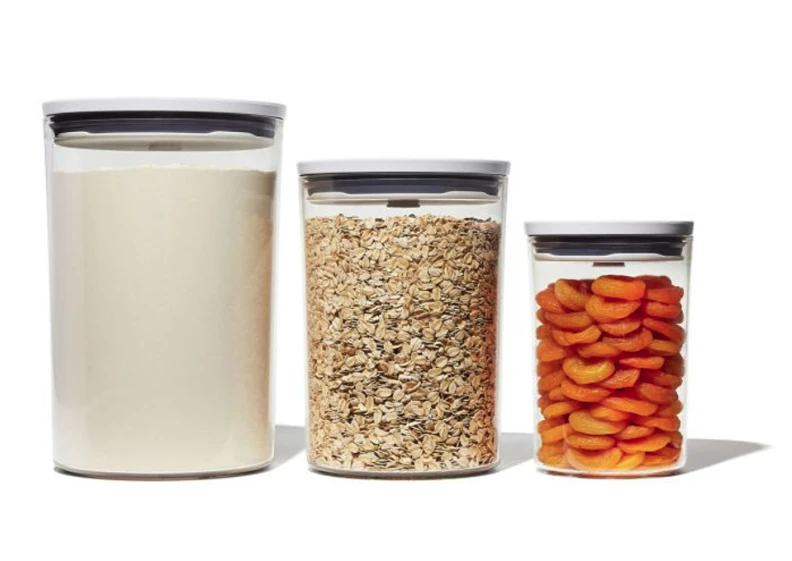 Keep dry foods and ingredients fresh and close at hand with the OXO Good Grips POP Round Container 3-Piece Set. Each Container has a push-button lid that creates an airtight seal—and doubles as a handle for easy, one-handed opening.