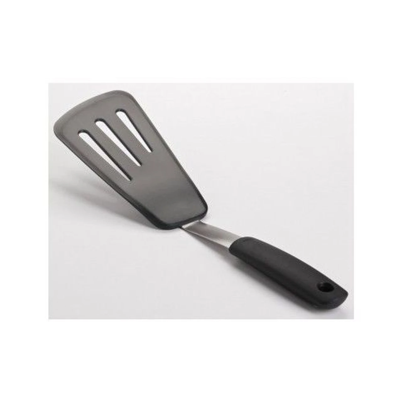 The OXO Good Grips Silicone Flexible Turners combine the strength of stainless steel with the advantages of silicone. The silicone outer layer, which is heat resistant to 600 degrees F and safe for non-stick cookware, is bonded to a flexible stainless steel core for added stability.