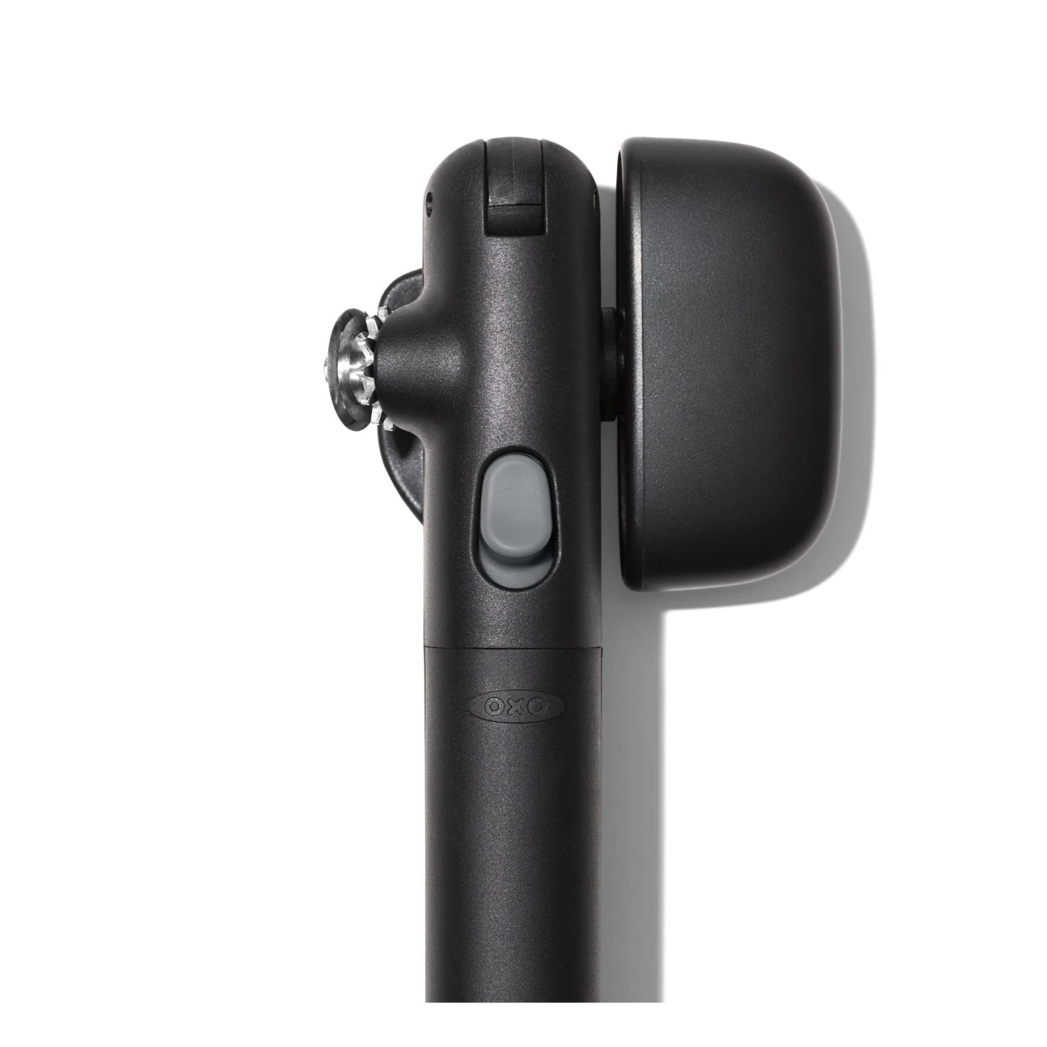 With a comfortable soft, non-slip grip and lock, the OXO Good Grips Locking Can Opener removes can lids with ease. Lock the lid in place with the Opener and turn the knob to open your can—the sharp, stainless steel wheel cleanly slices to remove the lid. To release the lid, press the button on the side of the Opener. Use the magnetic handles to lift lids for hands-free disposal. Hand wash with soap and water.