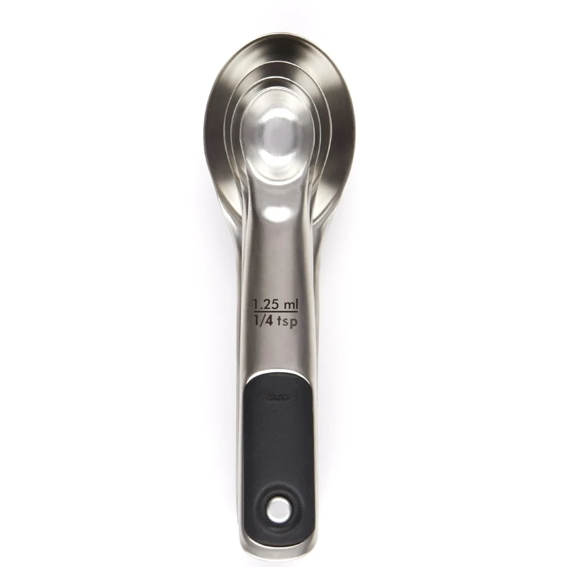- Magnetic handles keep spoons together for easy access and compact storage.