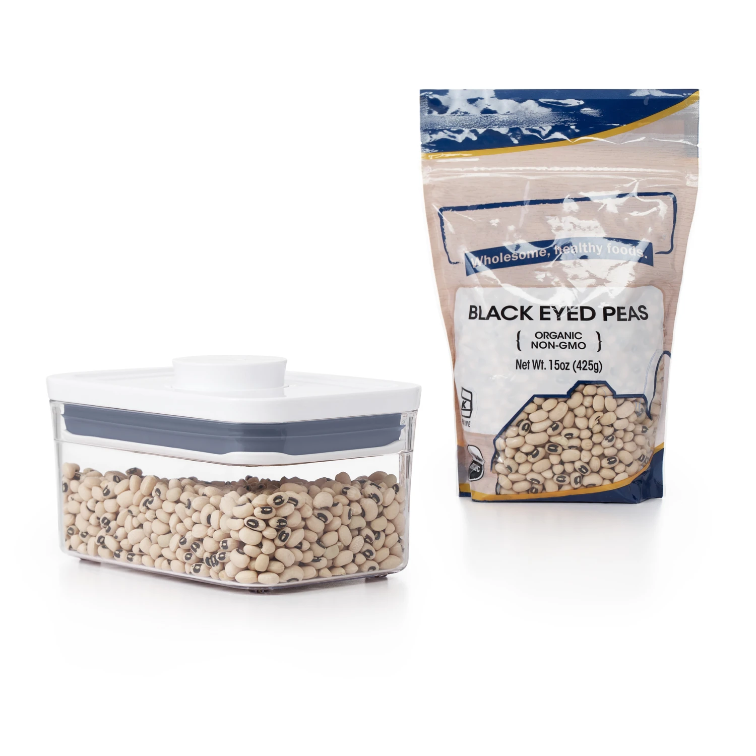 - Containers are stackable for optimal countertop and pantry organization.