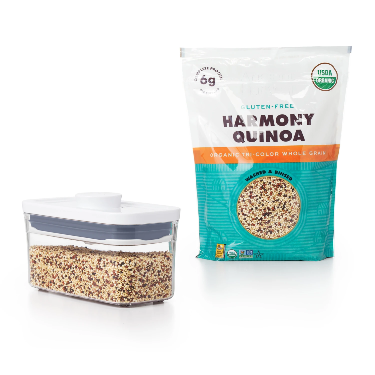 - Containers are stackable for optimal countertop and pantry organization.