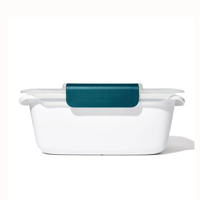 - The clear, watertight lid keeps wet and dry ingredients separate and features a silicone gasket and two locking clips for a secure seal.