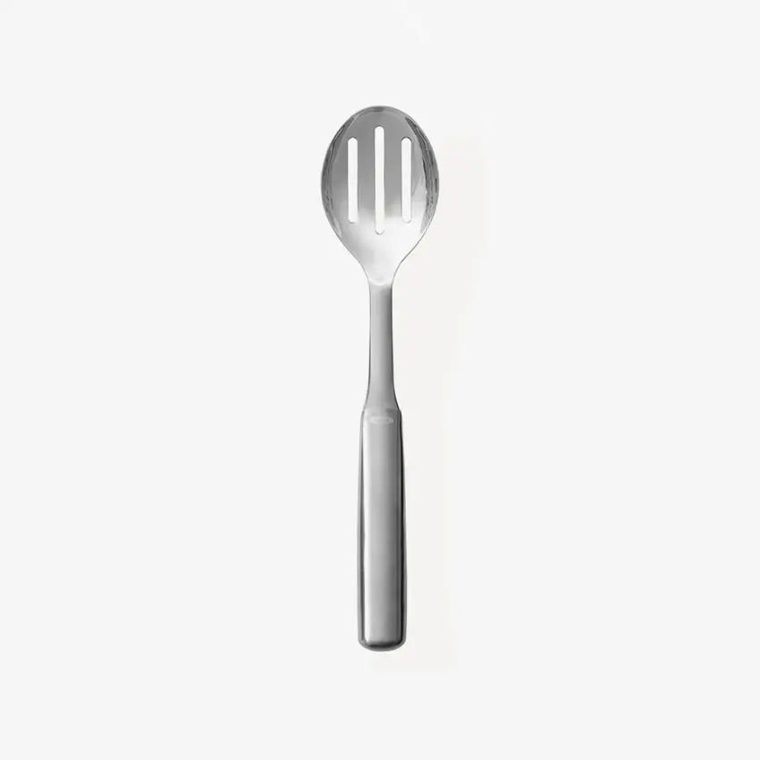 Meet your new favorite kitchen-to-table tool: The OXO Slotted Serving Spoon. It can stir soups, pull potatoes out of boiling water, strain vegetables, serve meatballs, and more. The sturdy stainless steel construction can stir up even the thickest stews, and lift heavy pieces of meat from a pot. The slots have been thoughtfully placed to allow liquid to drain through without making a mess. And the handle was designed with comfort in mind. Use it at the stovetop and around the dining room table