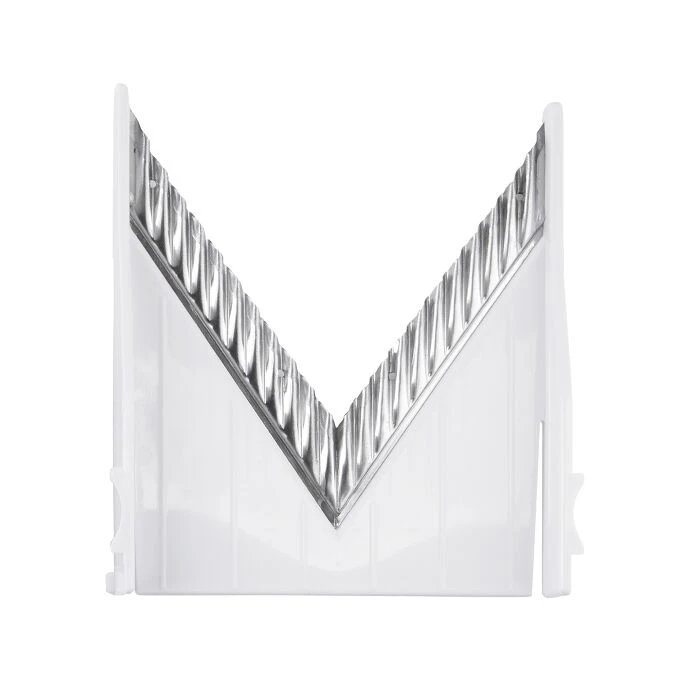 The V-Blade Mandoline Slicer’s sharp, hardened stainless steel crinkle blade easily slices firm vegetables and soft fruits into crinkle cuts. This replacement part is only for use on the Good Grips V-Blade Mandoline Slicer, item number 1155700.