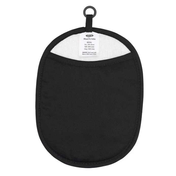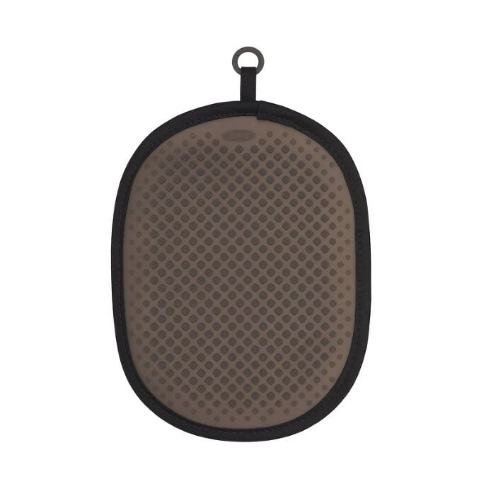 Hold hot items with confidence and care using the OXO Good Grips Pot Holder. The silicone body features a dexterous, non-slip diamond pattern that stands up to flames, stains and steam. Slide a hand into the insulated backside pocket for maximum control and comfort. The Pot Holder can also be used as a trivet to protect sensitive surfaces from hot cookware. When you’re finished, rinse the Pot Holder clean or wipe it down with a damp cloth before hanging it from the convenient loop.
