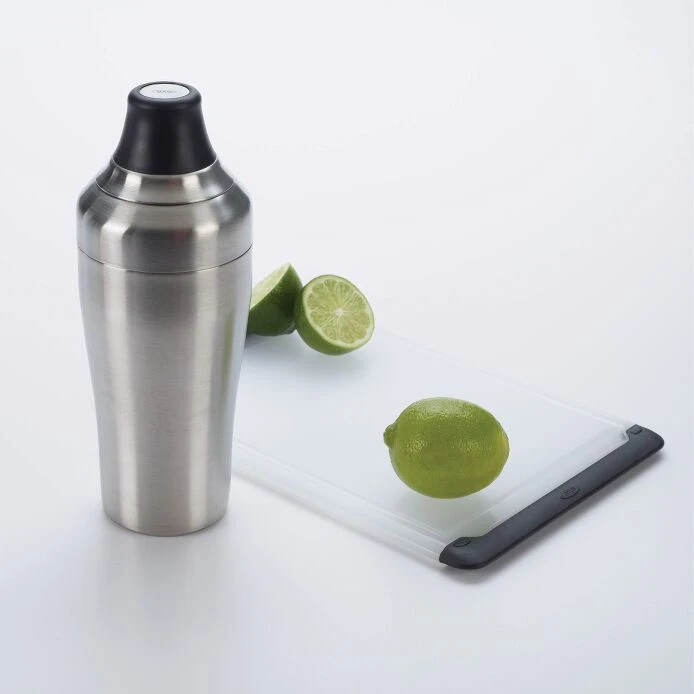 Our 18-ounce Shaker is made with double-wall stainless steel construction to prevent sweating and keep icy drinks from making your hands cold during use. Includes a jigger cap with 1-oz, 3/4-oz and 1/2-oz measurement markings a on its inner surface.